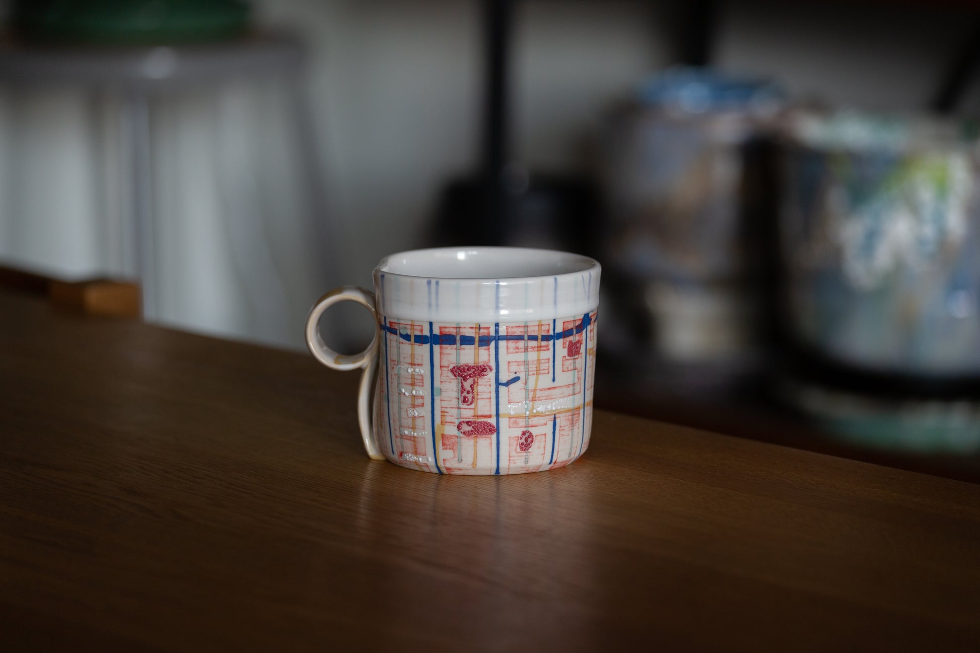 One-of-a-kind hand painted porcelain mug with textured glaze and sculptural handle. Tactile. Intentional. Functional art. Height: approx. 8.89 cm / 3.5" Width: approx. 10.16 cm / 4" (13.97 cm / 5.5" including handle)