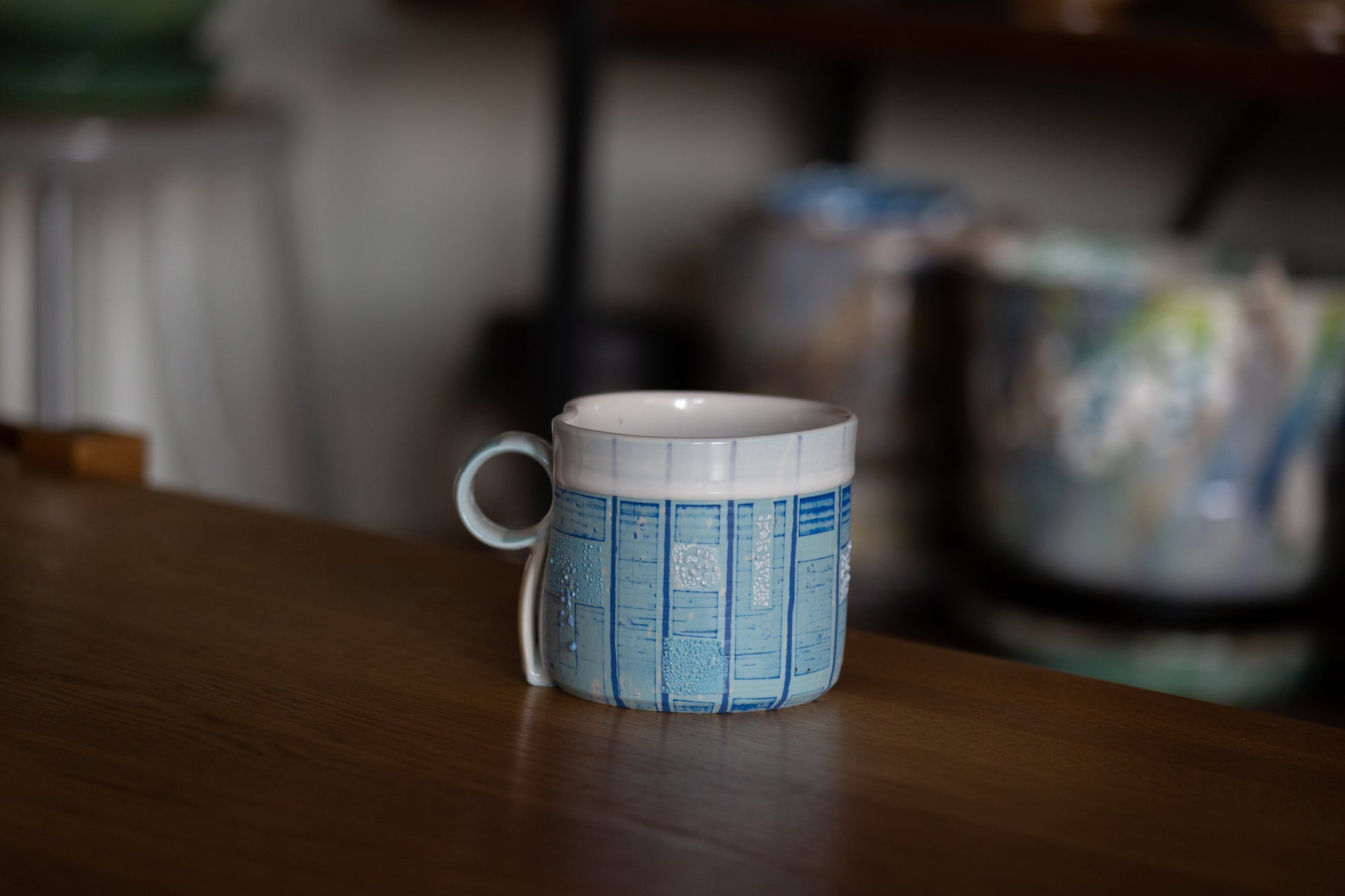 One-of-a-kind hand painted porcelain mug with textured glaze and sculptural handle. Tactile. Intentional. Functional art. Height: approx. 8.89 cm / 3.5" Width: approx. 10.16 cm / 4" (13.97 cm / 5.5" including handle)